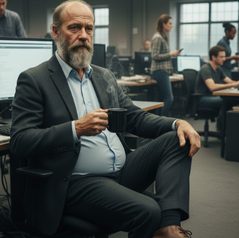 Wagner (55) is one of the longest-serving employees in the newsroom. A white man, bald, with a perpetually unshaven gray beard, he has a constantly rumpled appearance. Every day he wears the same combination of worn jeans, a dark t-shirt, and worn shoes. He has tired eyes, a sharp wit, and his quips usually elicit laughter from some and irritation from others. His political views are imbued with nostalgia: he believes that “in the old days” everything was simpler and that journalism has lost its way in trying to keep up with social and technological changes that he considers excessive. Despite this, he maintains a curiously close relationship with Ligéia. He recognizes in her a rare competence; he doesn’t understand why anyone, in the 21st century, would invest energy in an analog process. But, even so, he secretly admires her persistence, even if he never says so openly.